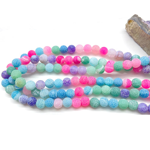 AGATA MATTE | 8MM | ROSADO CELESTE VERDE Y MORADO CRAQUELADO