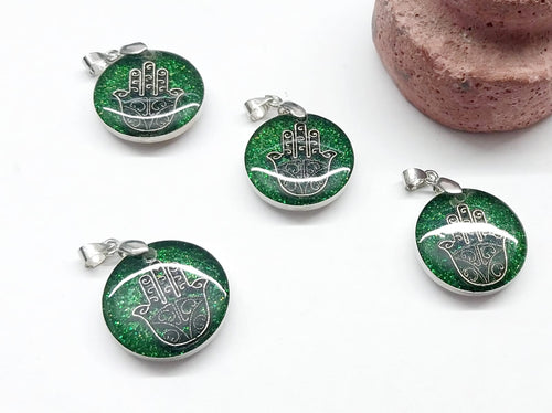 Colgante Resina | Figura Mano de Fatima | Fondo verde | 20mm