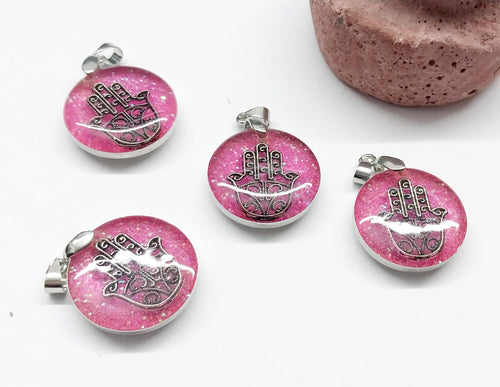 Colgante Resina | Figura Mano de Fatima | Fondo Rosado | 20mm