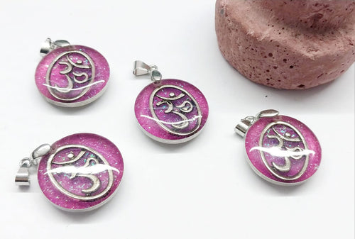 Colgante Resina | Figura Om | Fondo Rosado | 20mm