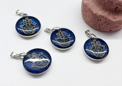 Colgante Resina | Figura Mano de Fatima | Fondo Azul | 20mm