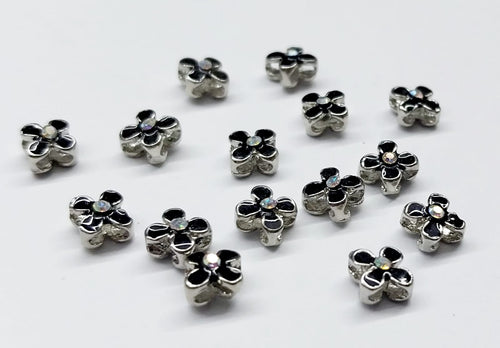 RODINADO | FLOR NEGRA | BASE PLATEADO | 5MM | 3 UNIDADES | (R9-87)