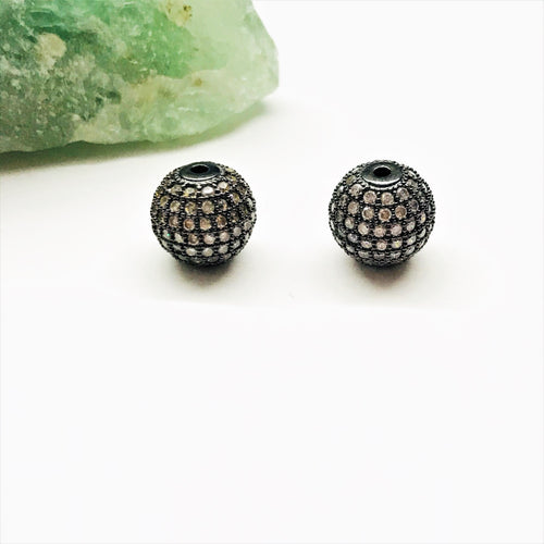 RODINADO | SEPARADOR BOLITA CON MICROCIRCON | 10MM | 1UND | NEGRO CON BLANCO (R2-18)