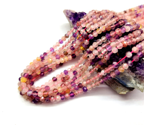 PIEDRAS NATURALES | MINI | MIX CUARZO FRUTILLA, RUTILADO ROSADO Y AMATISTA | RONDELL | 3X4MM | co.3