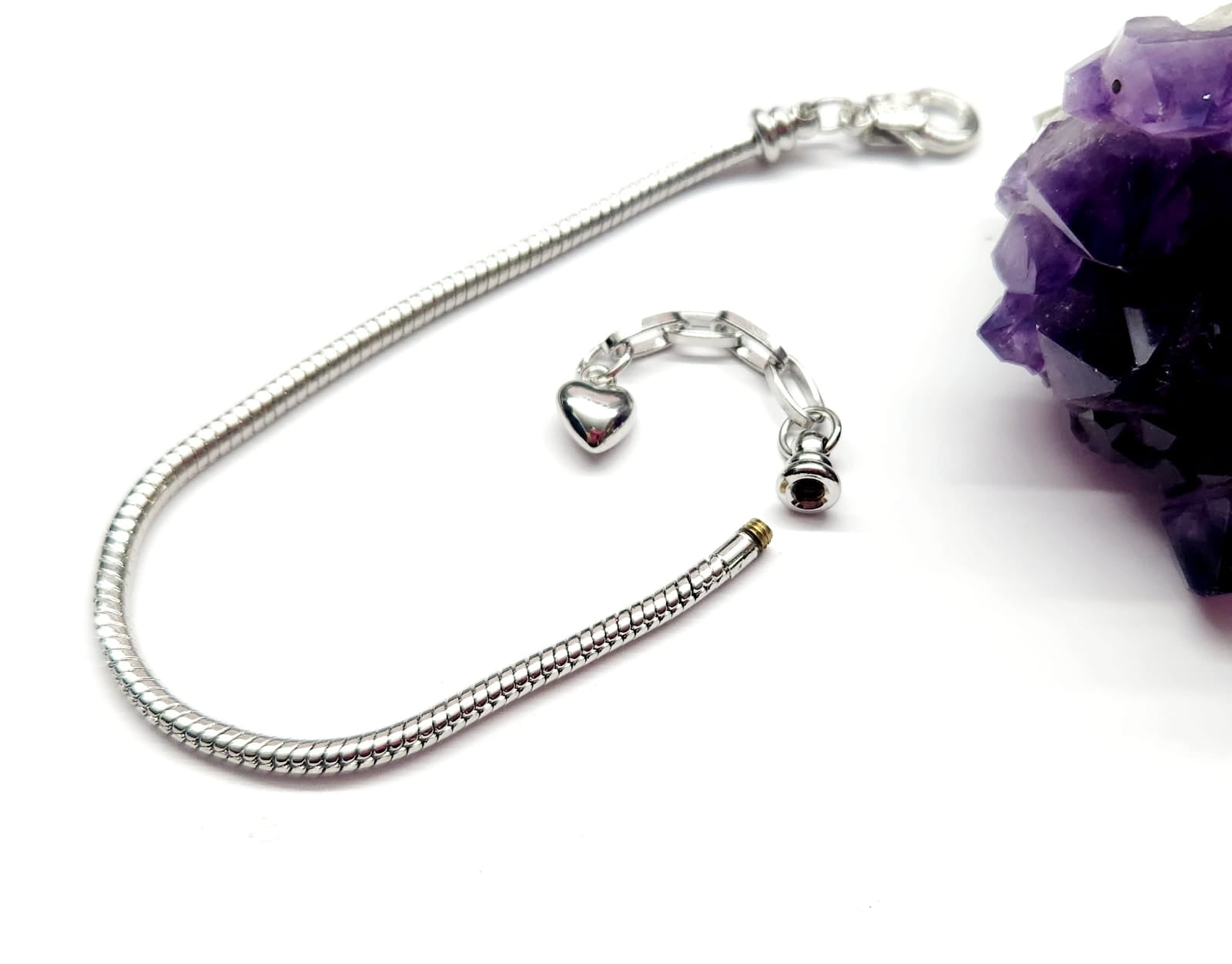 PULSERA ESTILO PANDORA | TERMINACION CORAZON | 22CM DE LARGO